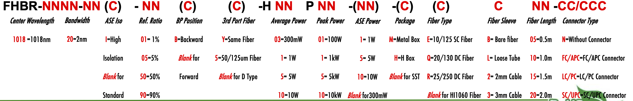FHBR 1018nm Singlemode SM Fiber Bandpass Filter partial reflective fiber mirror tap coupler splitter Hybrid Bandwidth 2nm optical fiber bandpass filter with partial reflective fiber mirror or tap coupler or splitter hybrid device or bandstop filter filtre passe-bande à fibre optique avec miroir à fibre à réflexion partielle ou coupleur de prise ou dispositif hybride séparateur ou filtre coupe-bande Bandpassfilter aus optischen Fasern mit teilweise reflektierendem Faserspiegel oder Abzweigkoppler oder Splitter-Hybridgerät oder Bandsperrfilter filtro passa banda in fibra ottica con specchio in fibra riflettente parziale o accoppiatore a presa o dispositivo ibrido sdoppiatore o filtro elimina banda filtro passa-banda de fibra óptica com espelho de fibra reflexiva parcial ou acoplador de torneira ou dispositivo híbrido divisor ou filtro de parada de banda Filtro de paso de banda de fibra óptica con espejo de fibra reflectante parcial o acoplador de grifo o dispositivo híbrido divisor o filtro de parada de banda optinen kuitukaistanpäästösuodatin osittain heijastavalla kuitupeilillä tai hanan liittimellä tai jakajahybridilaitteella tai kaistanstop-suodattimella glasvezelbanddoorlaatfilter met gedeeltelijk reflecterende vezelspiegel of kraankoppeling of splitter hybride apparaat of bandstopfilter pásmový filtr s optickým vláknem s ?áste?ným reflexním vláknovým zrcadlem nebo odbo?ovací spojkou nebo rozbo?ovacím hybridním za?ízením nebo pásmovým filtrem ?wiat?owodowy filtr pasmowo-przepustowy z cz??ciowo odblaskowym lustrem ?wiat?owodowym lub hybrydowe urz?dzenie sprz?gaj?ce lub rozdzielaj?ce lub filtr pasmowy optisk fiber båndpassfilter med delvis reflekterende fiberspeil eller tappkobling eller splitter hybrid enhet eller båndstoppfilter HI1060 1060XP LMA 6/125um 10/125um 10/130um 12/125um 12/130um 15/125um 15/130um 20/125um 20/130um 25/250um 30/250um SC Single Clad Cladding DC Double Clad or large mode area fiber fibre à simple gaine ou fibre à double gaine ou fibre à grande zone de mode ingle Clad-Faser oder Double Clad-Faser oder Large-Mode-Area-Faser ibra con revestimiento simple o fibra con revestimiento doble o fibra de área modal grande fibra de revestimento simples ou fibra de revestimento duplo ou fibra de área de modo grande ibra a rivestimento singolo o fibra a doppio rivestimento o fibra a grande area modale yksikerroksinen kuitu tai kaksinkertainen kuitu tai suurimuotoinen kuitu 2-port D Type 3-port Y Type 4-port X Type Type D à 2 ports Type Y à 3 ports Type X à 4 ports -Port-D-Typ 3-Port-Y-Typ 4-Port-X-Typ Tipo D de 2 puertos Tipo Y de 3 puertos Tipo X de 4 puertos Tipo D de 2 portas Tipo Y de 3 portas Tipo X de 4 portas ipo D a 2 porte Tipo Y a 3 porte Tipo X a 4 porte 2-porttinen D-tyyppi 3-porttinen Y-tyyppi 4-porttinen X-tyyppi