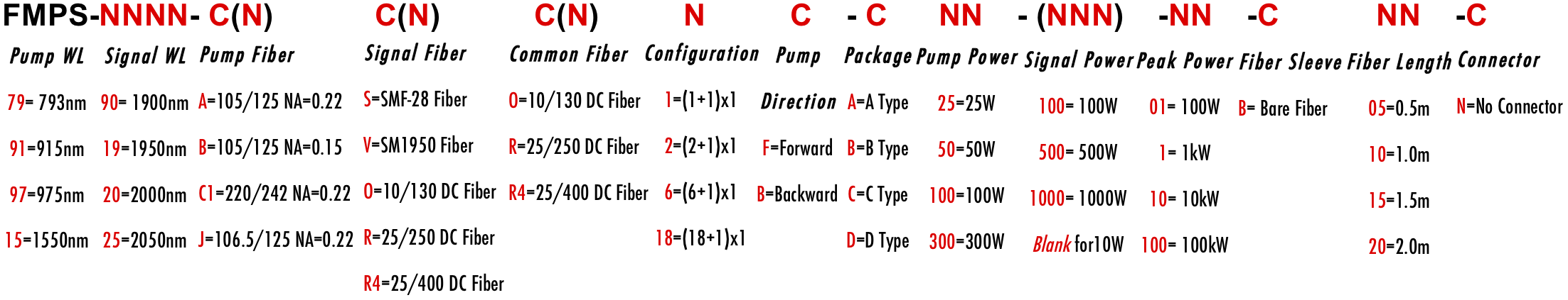 793nm, 808nm, 830nm, 915nm, 950nm, 975nm, 980nm, 1550nm