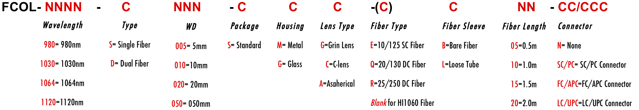 FCOL 1053nm 1030nm 1073nm 1035nm 1036nm 1040nm 1045nm 1050nm 1055nm 1056nm 1060nm 1064nm 1063nm 1065nm 1070nm polarization insensitive optical fiber collimator with collimated gaussian beam for free space output or space doublet to collect light from free space with Grin lens C spherical lens and aspherical lens colimador de fibra óptica insensible a la polarización con haz gaussiano colimado para salida de espacio libre o doblete espacial para recoger luz del espacio libre con lente esférica C y lente asférica de lente Grin colimador de fibra óptica insensível à polarização com feixe gaussiano colimado para saída de espaço livre ou dupleto de espaço para coletar luz do espaço livre com lente Grin lente esférica C e lente asférica polarisaatioherkkä optisen kuidun kollimaattori, jossa on kollimoitu gaussinen säde vapaan tilan tuottamiseksi tai avaruusdubletti valon keräämiseksi vapaasta tilasta Grin-linssin pallomaisella linssillä ja asfäärisellä linssillä polarisationsunempfindlicher Lichtleiterkollimator mit kollimiertem Gaußschen Strahl für die Ausgabe im freien Raum oder Raumdublett zum Sammeln von Licht aus dem freien Raum mit der sphärischen Linse C und der asphärischen Linse der Grin-Linse C Collimateur à fibre optique insensible à la polarisation avec faisceau gaussien collimaté pour une sortie d'espace libre ou doublet d'espace pour collecter la lumière de l'espace libre avec lentille Grin C lentille sphérique et lentille asphérique kolimator ?wiat?owodowy niewra?liwy na polaryzacj? ze skolimowan? wi?zk? Gaussa zapewniaj?c? wyj?cie w wolnej przestrzeni lub dublet kosmiczny do zbierania ?wiat?a z wolnej przestrzeni za pomoc? soczewki sferycznej Grin C i soczewki asferycznej collimatore in fibra ottica insensibile alla polarizzazione con fascio gaussiano collimato per l'uscita nello spazio libero o doppietto nello spazio per raccogliere la luce dallo spazio libero con lente Grin C lente sferica e lente asferica HI1060 1060XP LMA 6/125um 10/125um 10/130um 12/125um 12/130um 15/125um 15/130um 20/125um 20/130um 25/250um 30/250um SC Single Clad Cladding DC Double Clad 3-port Y Type